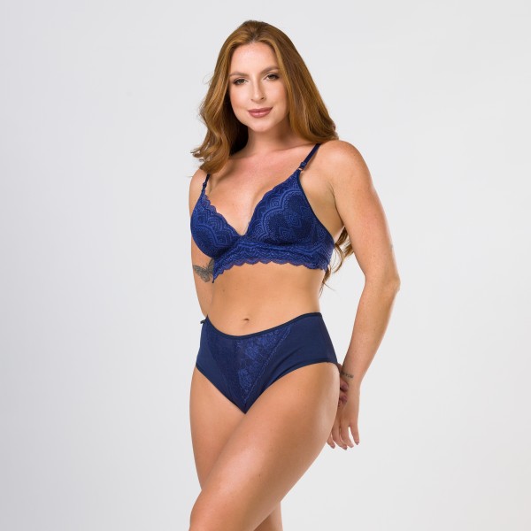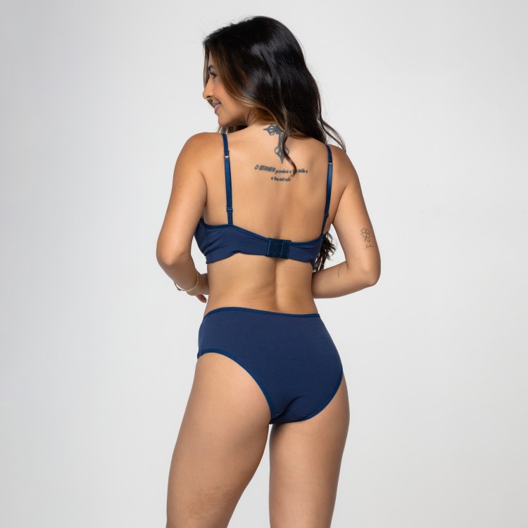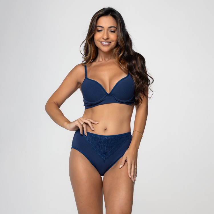 Calcinha de cintura alta na cor marinho com detalhe em renda