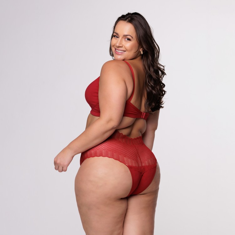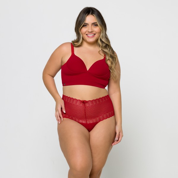 Caleçon Plus Size em Renda na Cor rubi