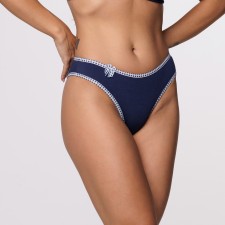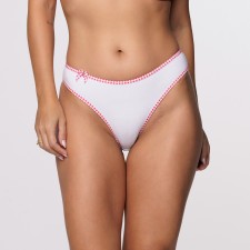 Calcinha básica na cor Amarelo em algodão egípcio com viés em poliamida e elastano. Detalhe de estampa em xadrez no viés e laço. Modelagem super confortável.