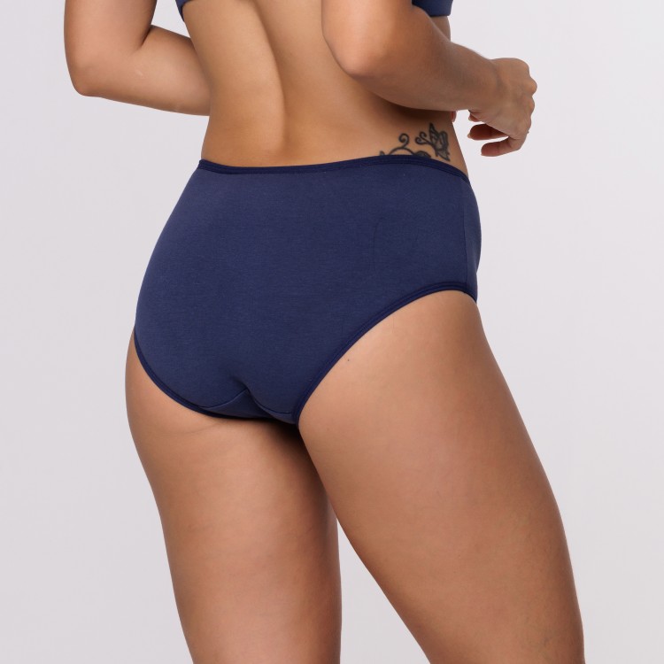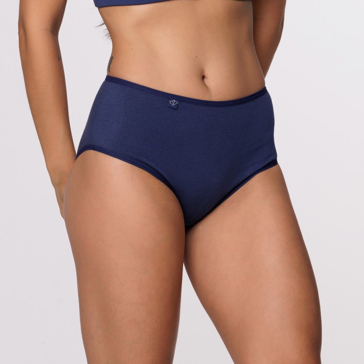 Esta calçola é confeccionada em algodão egípcio, proporcionando um toque macio e confortável. O design apresenta uma modelagem mais alta e larga, sendo ideal para quem prefere uma peça com maior cobertura e conforto.