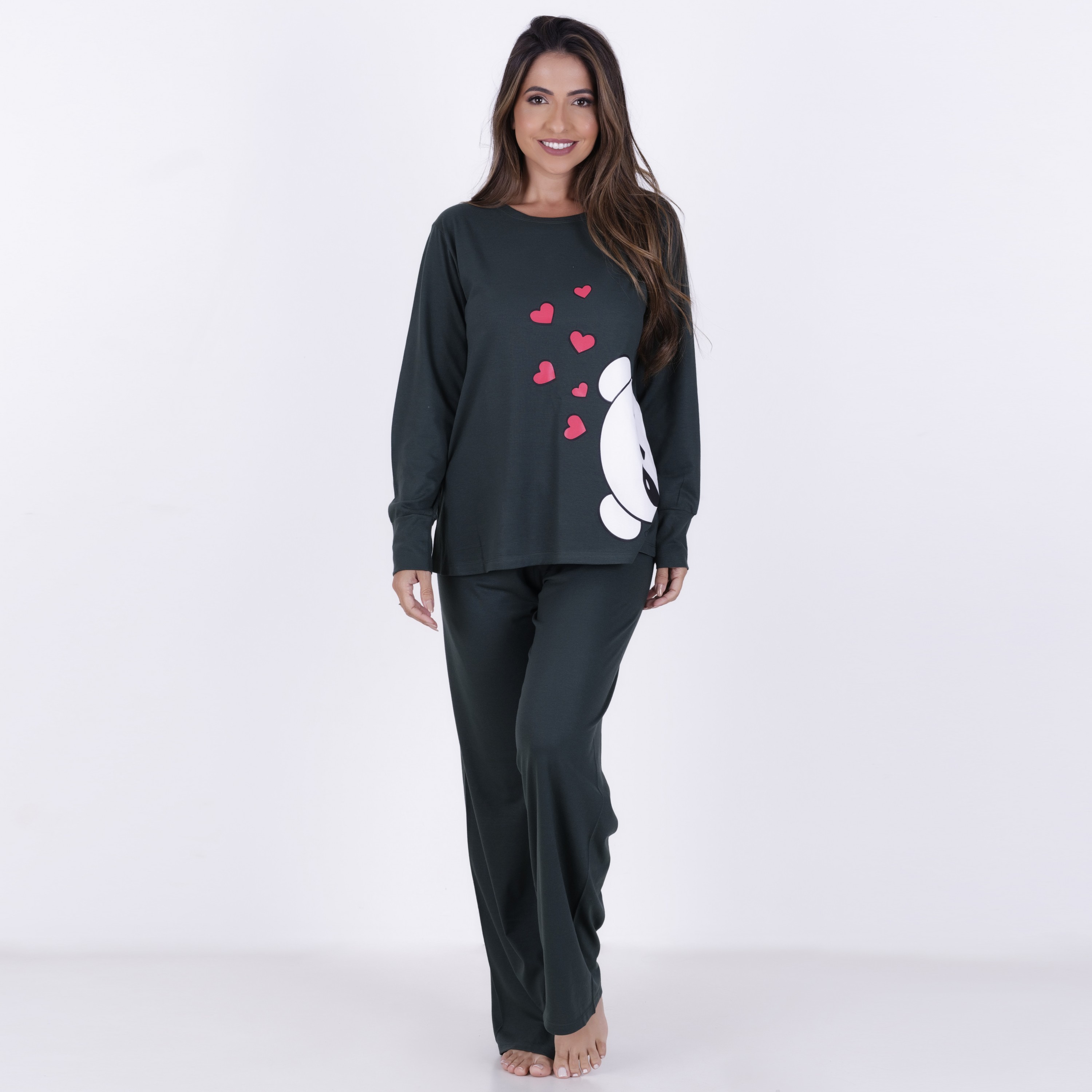 Pijama em algodão , manga longa e calça comprida com estampa de silk, cadarço na cintura para que você ajuste perfeitamente no corpo. Muito confortável e muito estiloso. Linda estampa de PANDA . Coleção nova e exclusiva