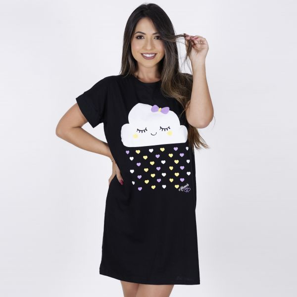Camisão Preto com estampa em Silk Nuvem com Manga Curta, confeccionada em algodão que apresenta modelagem reta com decote arredondado. Confortável e divertida, a peça garante momentos agradáveis de descanso e boas noites de sono. Acompanha linda necessaire na cor Preta estampa em silk Nuvem na cor branca.