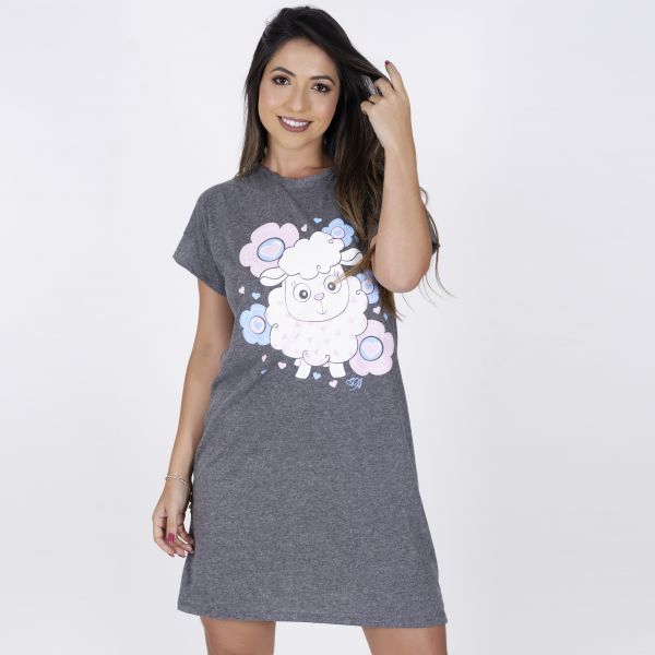 Camisão Mescla Escuro com estampa em Silk Ovelha com Manga Curta, confeccionada em algodão com poliéster que apresenta modelagem reta com decote arredondado. Confortável e divertida, a peça garante momentos agradáveis de descanso e boas noites de sono. Acompanha linda necessaire na cor Mescla Escuro estampa em silk Ovelha na cor Branco.