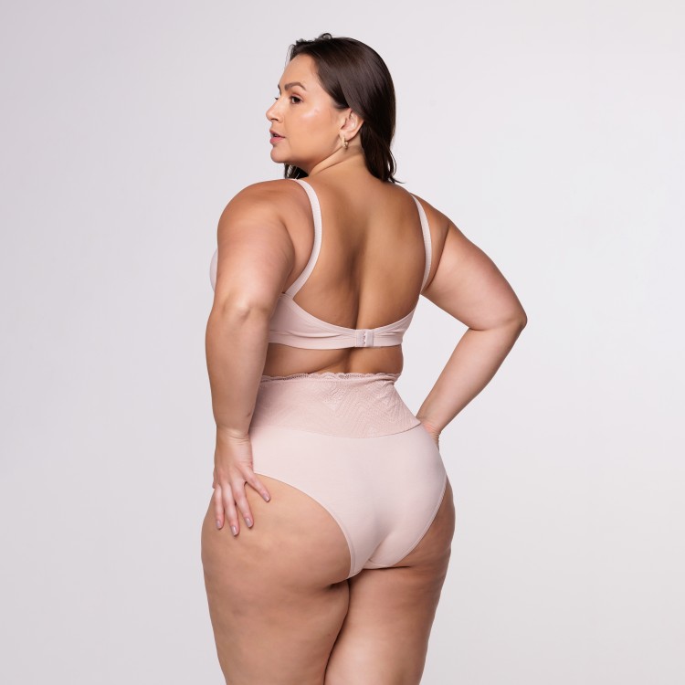 Calcinha de Cintura Alta Plus Size em Algodão Egípcio com Barra de Renda Forrada na Cor Nude