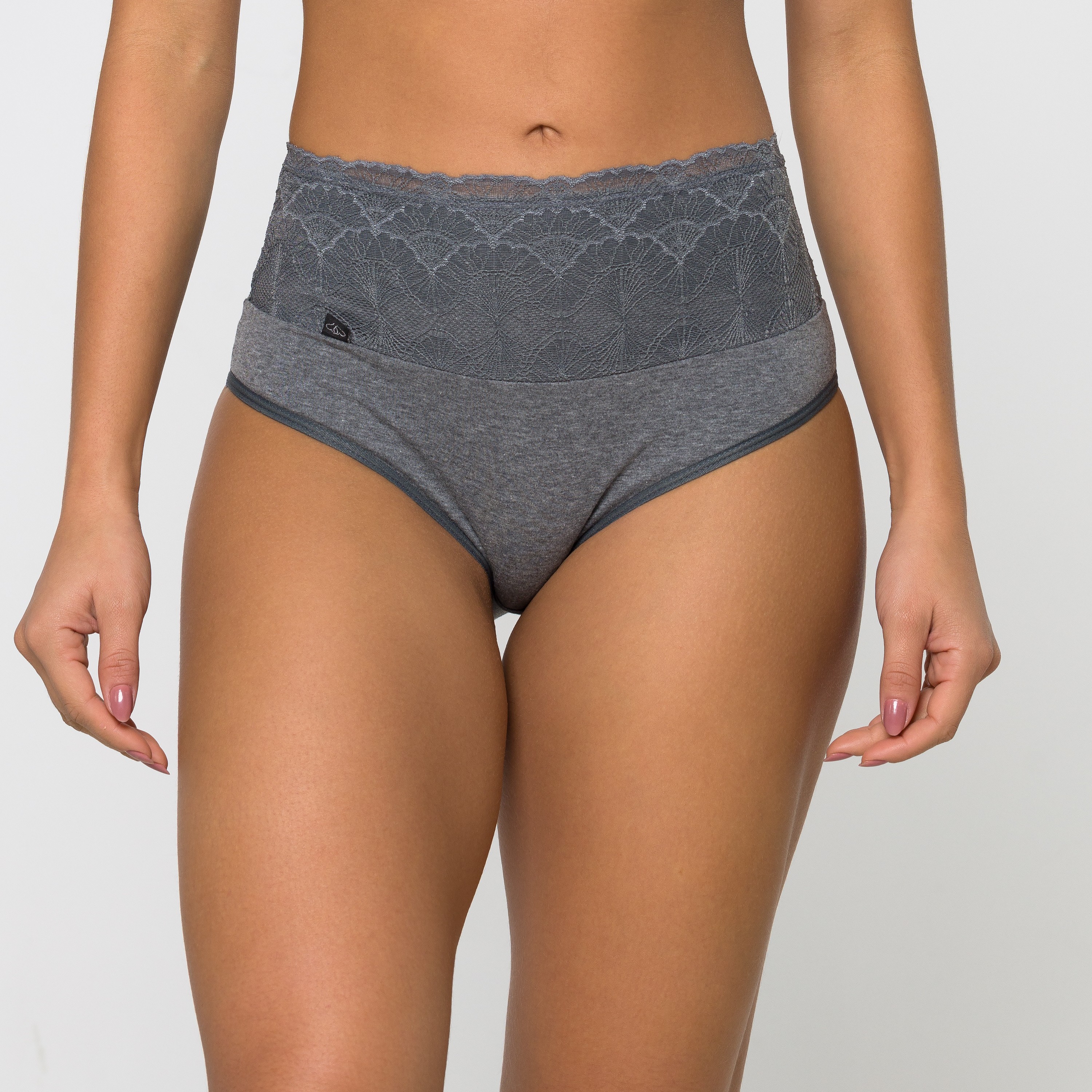Calcinha com barra de renda na cor cinza