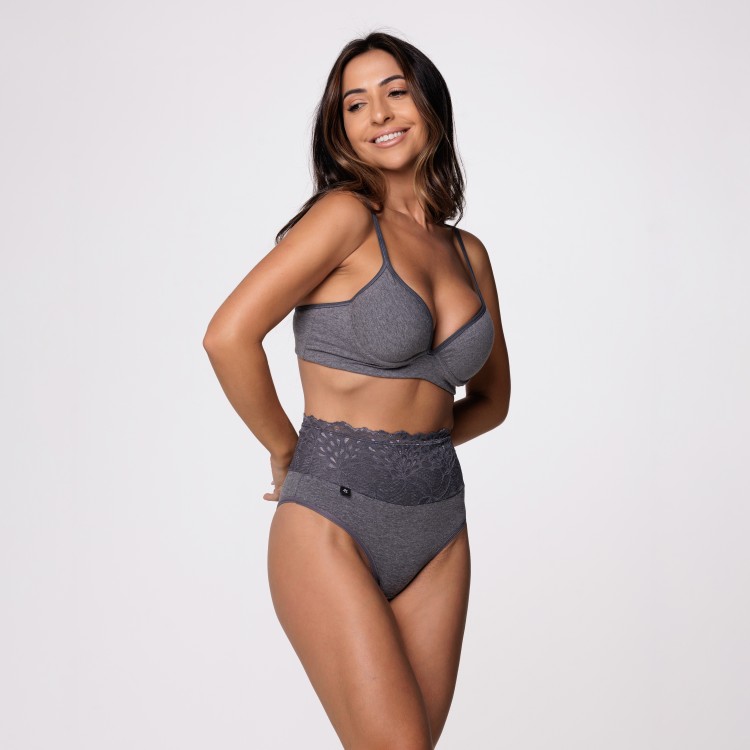 Calcinha fio com barra de renda na cor cinza