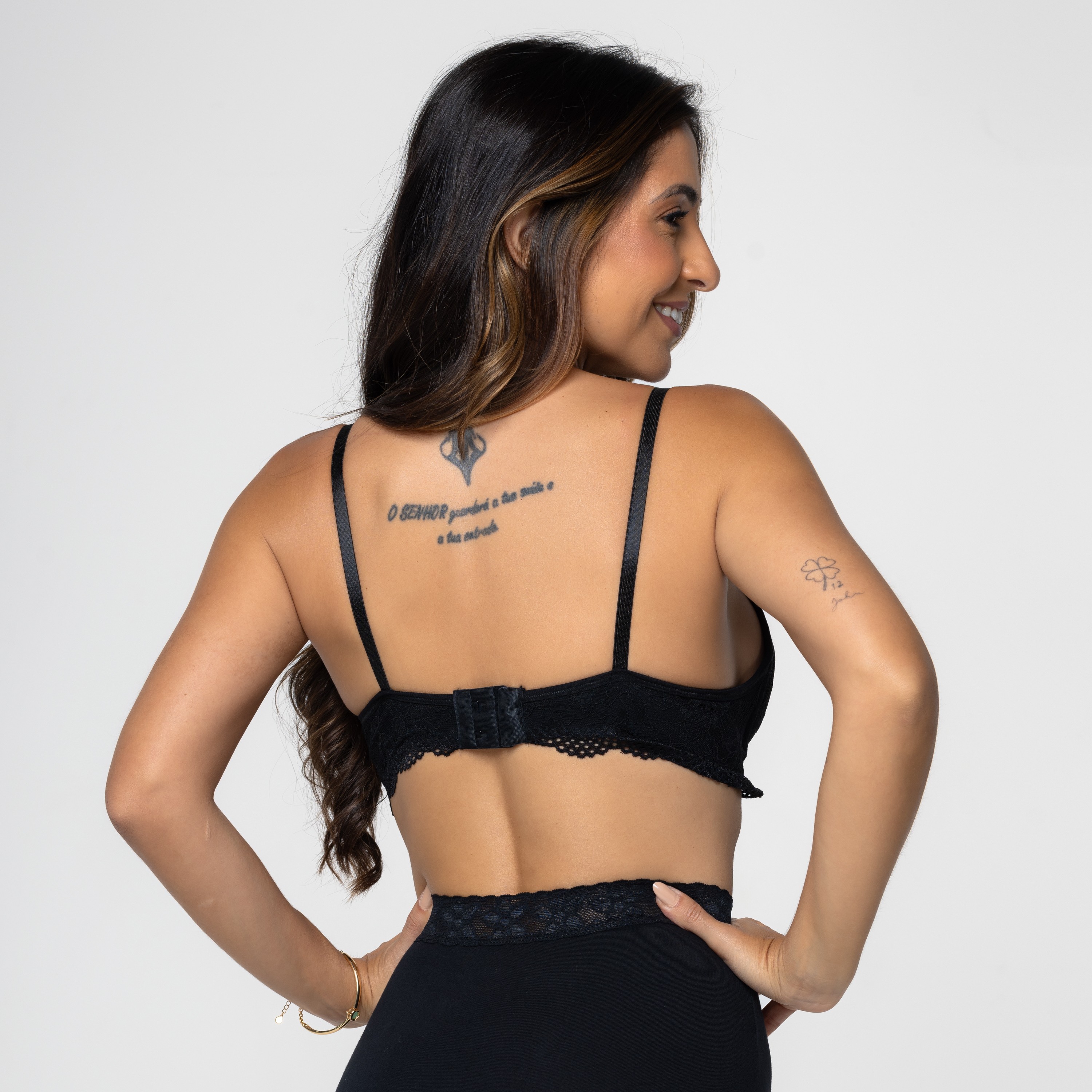 Sutiã com bojo flexível sem aro em renda na cor preta