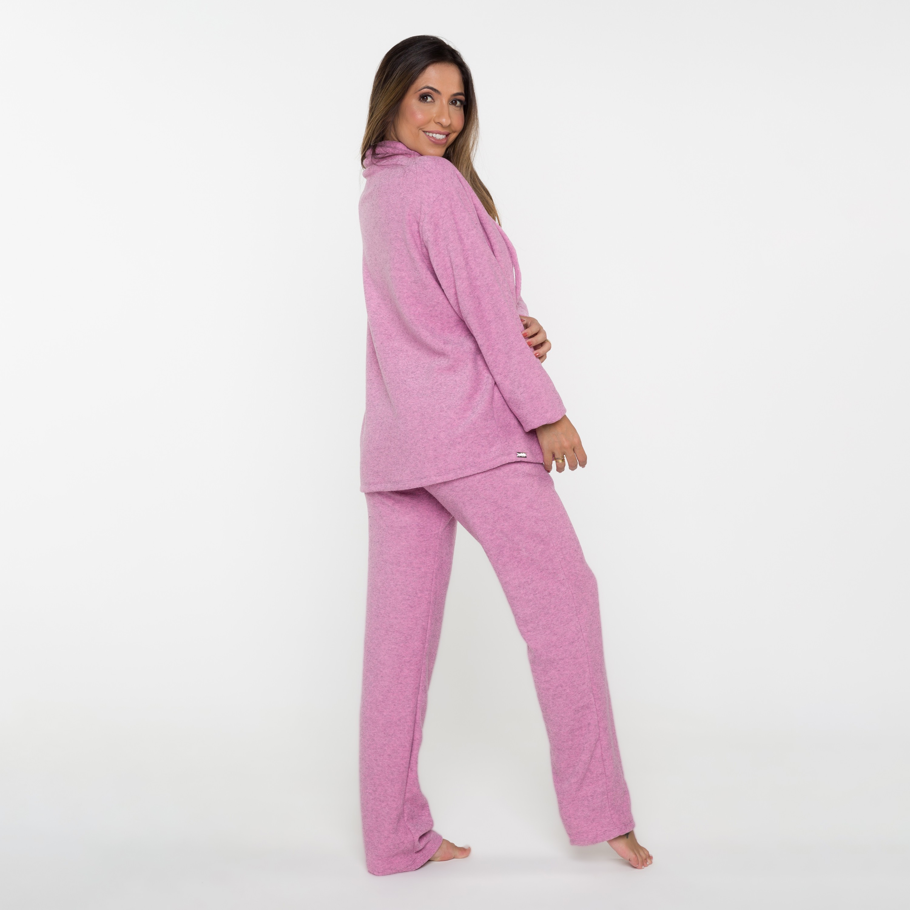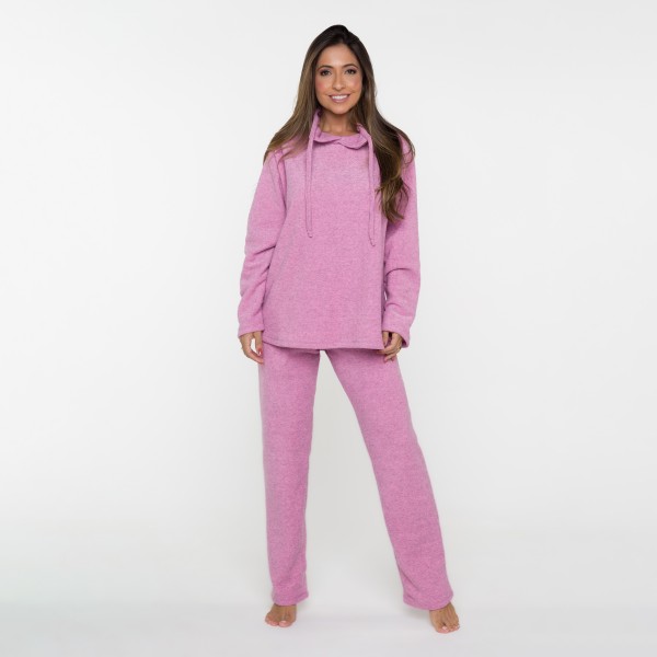 O conjunto Plush é uma opção confortável e estilosa para o seu inverno. É composto por uma calça com bolso e uma camisa de manga longa de gola com cadarço. Você linda se sentindo leve, quentinha ,e super atual.