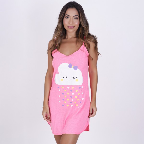 Camisola fabricada em Algodão com Poliéster na cor rosa fluor com estampa em silk nuvem. Em modelagem regata a peça possui alças finas ajustáveis com decote em "U". Confortável e divertida, a peça é a pedida perfeita para boas noites de sono. Acompanha linda necessaire na cor rosa fluor com estampa nuvem