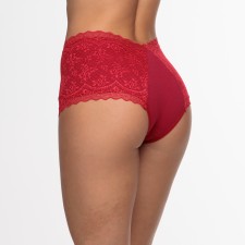 Calcinha caleçon toda em renda na cor rubi