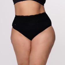 Calcinha de Cintura Alta Plus Size em Algodão Egípcio na cor Preta com Barra de Renda Forrada