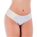 Tangão na cor Branco em algodão egípcio com viés de elastano com poliamida e uma pedrinha na cintura.Nas laterais renda forrada no mesmo algodão.Modelagem maior e mais alta na cintura.